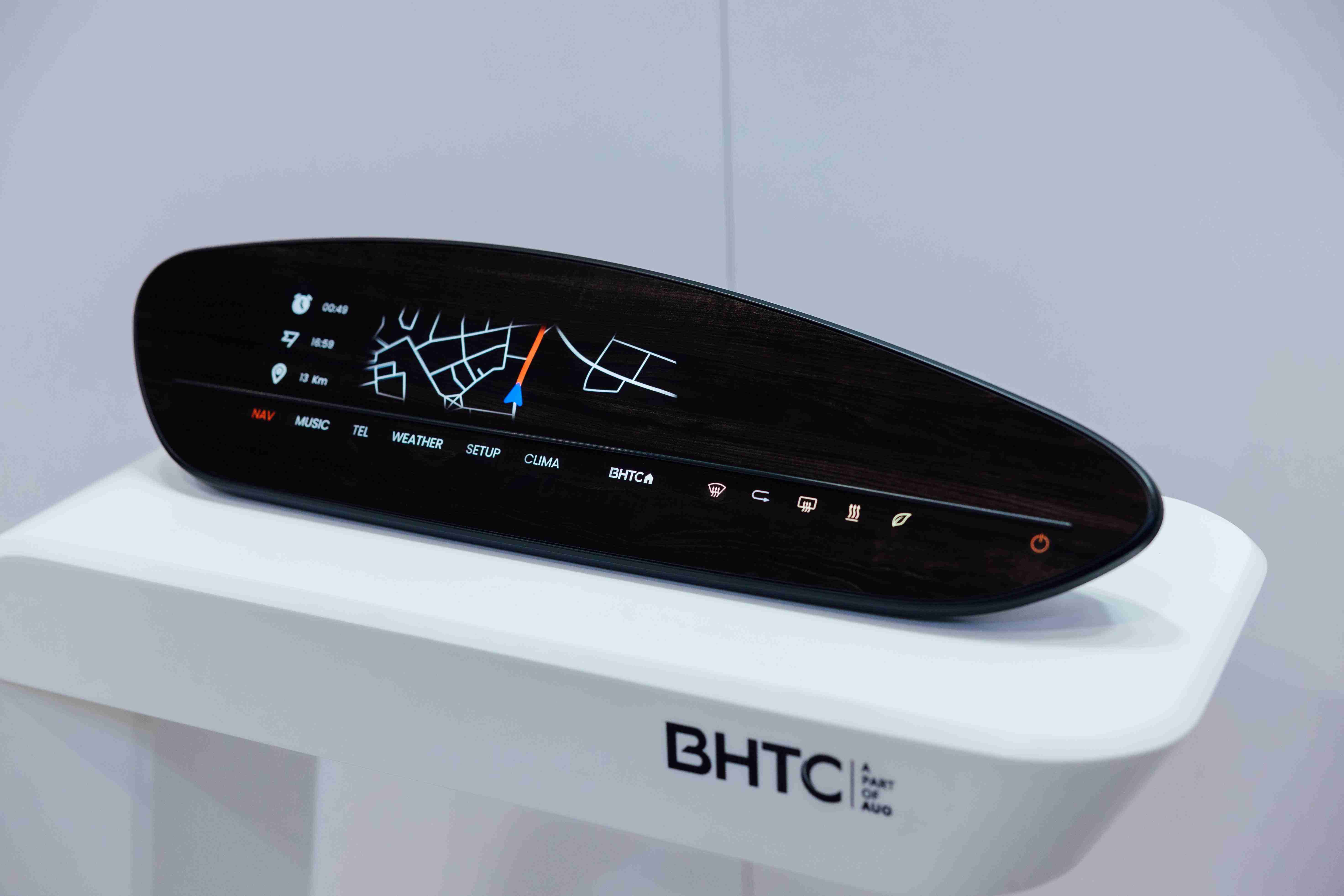 BHTC的木纹车用显示器(Display Behind Wood)将无缝木质表面与显示器结合后,,,可以融入车内设计中,,,提供驾驶优质的视觉效果,,加上其无边框的设计和亮度调控,,,,创造更优质的车内体验。。。
