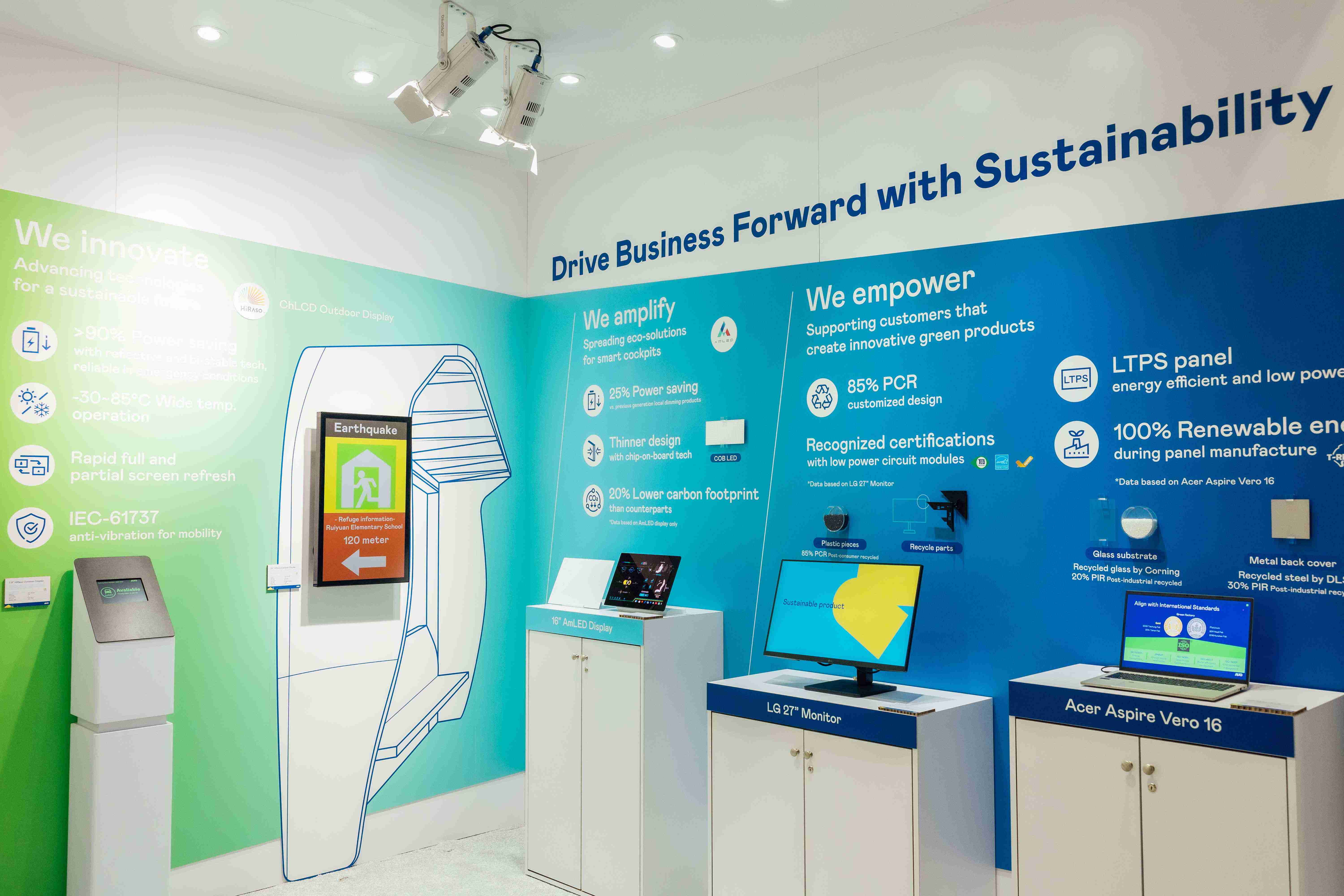 至成国际运用创新显示技术HiRaso胆固醇液晶双稳态技术达到显示零耗能、、扩大节能省电的AmLED显示技术应用于车用产品、、以再生的消费后回收(PCR)塑料及全绿电生产之面板,,应用于笔电及萤幕,,增加绿色价值。。