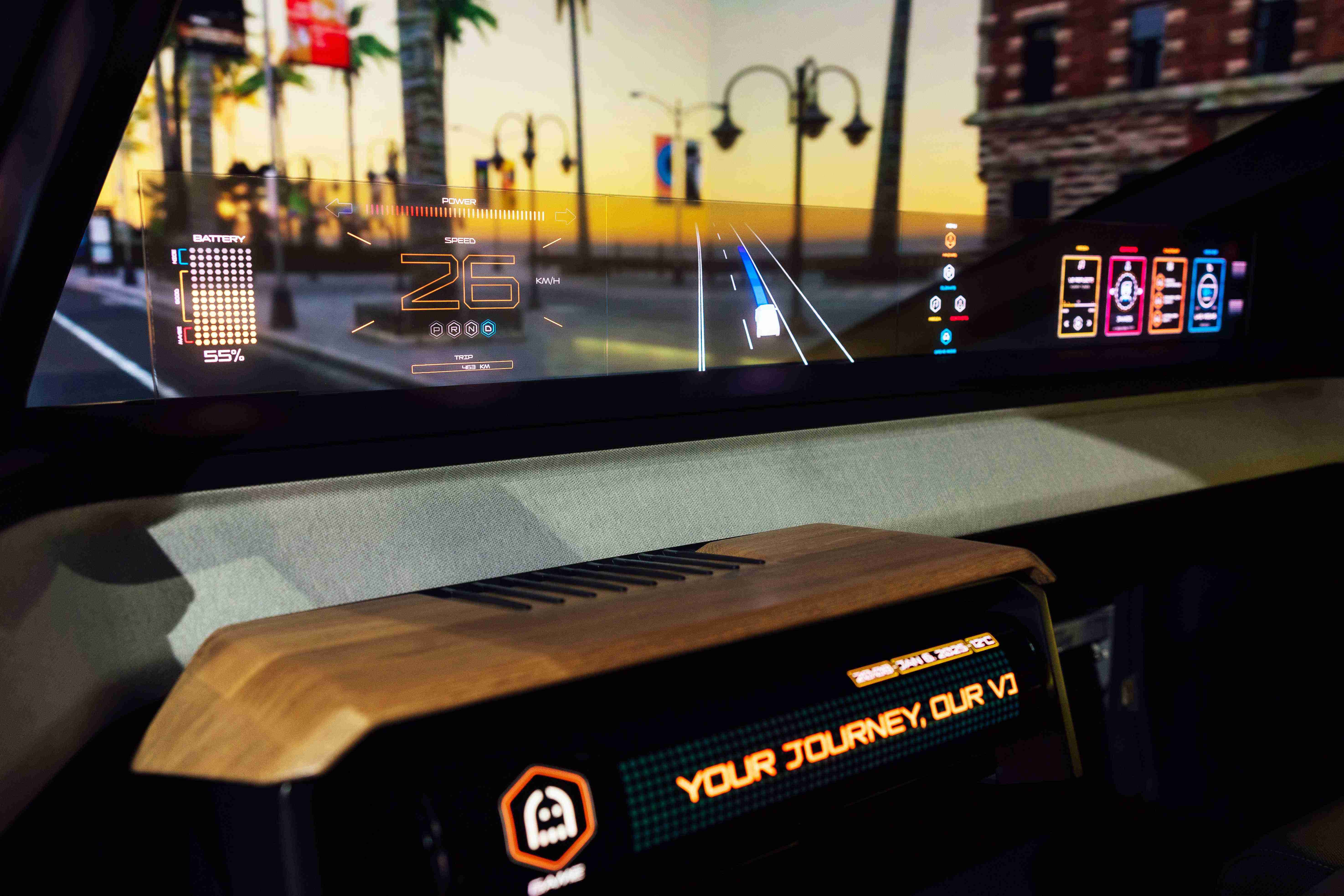 透过XR 互动智慧窗(XR Interactive Window)展现强大的运算能力,,,搭配AI人工智慧自动生成运算,,,,未来当车辆行经途中,,只需在车窗上圈选对应之车外标的,,,即可在萤幕中与其互动、、、、获取相关资讯,,,,让乘客享有身历其境、、互动式且逼真的体验。。
